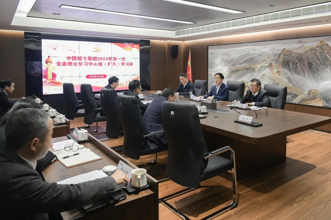1月26日,中国稀土集团召开党委理论学习中心组2024年第1次(扩大)学习会,深入学习贯彻习近平总书记关于全面落实以人民为中心发展思想、扎实推进共同富裕的系列重要论述,紧密结合集团公司工作实际,研究贯彻落实措施。集团公司党委书记、董事长敖宏主持会议并讲话,集团公司党委副书记、董事、总经理刘雷云,集团公司党委领导杨国安、王涛、覃荆文、郭良金、谢志宏参加学习,部分党委领导围绕学习内容作研讨交流。